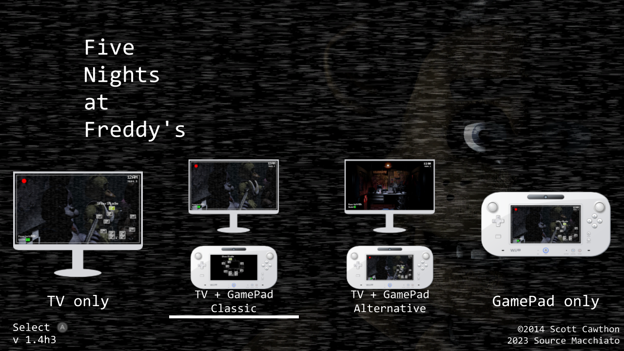 From one of the things that I've seen online and the trailer for the patch notes, I don't see why it wouldn't be possible to have the gamepad rotating be the trigger for the cameras and the cameras displaying on the gamepad while the office dims And cannot be interacted with, If you got jump-scared while being on the cameras, then why wouldn't it duplicate the office onto the gamepad and then just show the jump-scare? It would have the exact same effect as if you were doing it the way you're currently doing it. Except it would be a lot more impactful as there are a ton of people who really thought that the Wii U gamepad could really just be the tablets that you use to watch the cams. You can even have a setting inside of the game which allows you to toggle in between the two display modes(akin to the Paper Mario game for the system) Also, having the left and right doors interacted with using the Why end B buttons for the right side door and the up and down D pad for the left side door would be really beneficial while both sticks are used to move the camera in the office. On the cameras, you can either use the touchscreen or you can use the left stick Or, D-pad to move through the cameras.